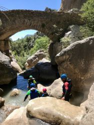 The Boixols canyon is an hour's drive from the campsite, but this hour is definitely worth it. It is a very varied canyon. We have some fun jumps and beautiful abseils. Since this canyon mainly consists of limestone, we also find a beautiful piece of nature here with beautiful clear water.