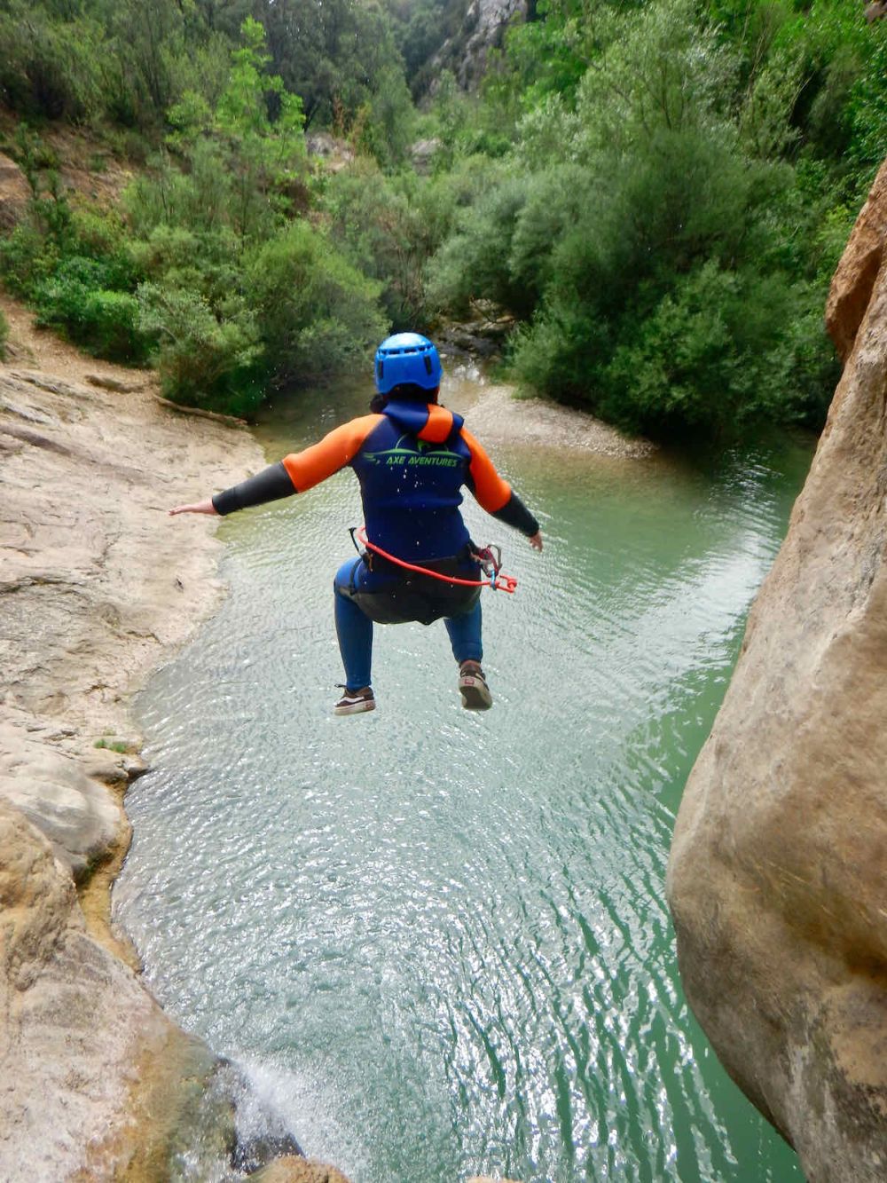 We usually start at 9:30 am at the equipment tent to try on the wetsuits. After everyone has a well-fitting wetsuit, we will drive about an hour to the village of Boixols. Here we will partially change clothes and then we will walk for about 15 minutes to the entrance to the canyon. After we have fully prepared ourselves, an instruction will be given after which we will enter the canyon. We usually have a lunch break halfway through the tour.