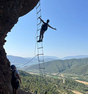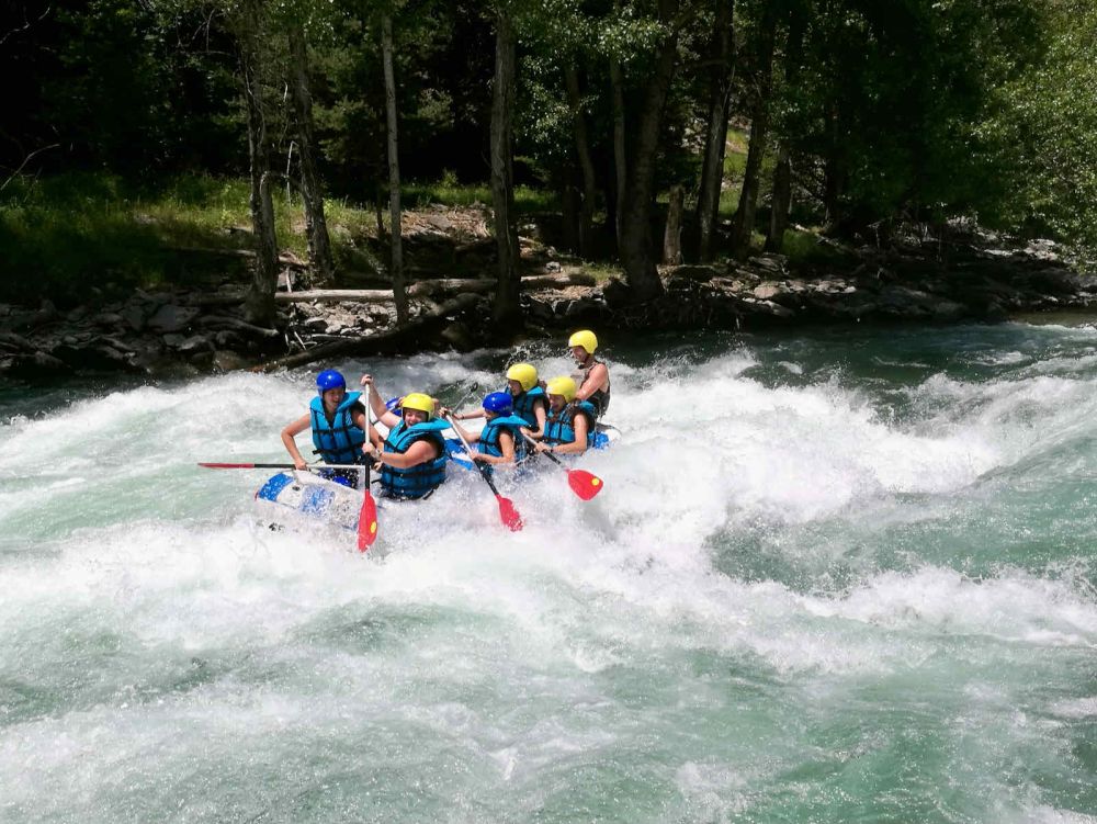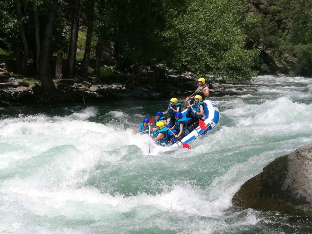 Als we allemaal nog in de boot zitten dan komen we na het laatste rustigere stukje aan in het dorpje Rialp wat het einde van dit traject is.