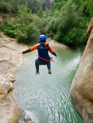The Boixols canyon is an hour's drive from the campsite, but this hour is definitely worth it. It is a very varied canyon. We have some fun jumps and beautiful abseils. Since this canyon mainly consists of limestone, we also find a beautiful piece of nature here with beautiful clear water.