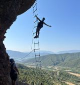 This via ferrata was built in 2023 and has everything you could possibly want in a via ferrata. Enjoy the amazing views while climbing safely secured to a cable to the top. There are different routes (easy and difficult) that come together again and again, so you can choose the level that suits you best.