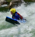 Uitgerust met zwemvliezen en een extra dik duikpak 'flipperen' we liggend op een bodyboard door de hoge golven en 'diepe' waterkuilen. Een activiteit voor de durfals met wat power in de benen.